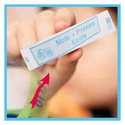 Étiquettes nom et prénom personnalisées, tissées ou imprimées, à coudre ou thermocollantes pour une fixation facile. Idéales pour identifier les vêtements à l’école, en colonie ou en maison de retraite. Formats 10 mm (1 ligne) et 15 mm (jusqu’à 3 lignes) avec plus de personnalisation : choix de polices, encadrement et coloris variés. Fabrication française, haute qualité.